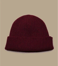 Bonnet en laine recyclée fabriqué en France de couleur bordeaux. Taille unique : 55-60 cm de tour dre tête.