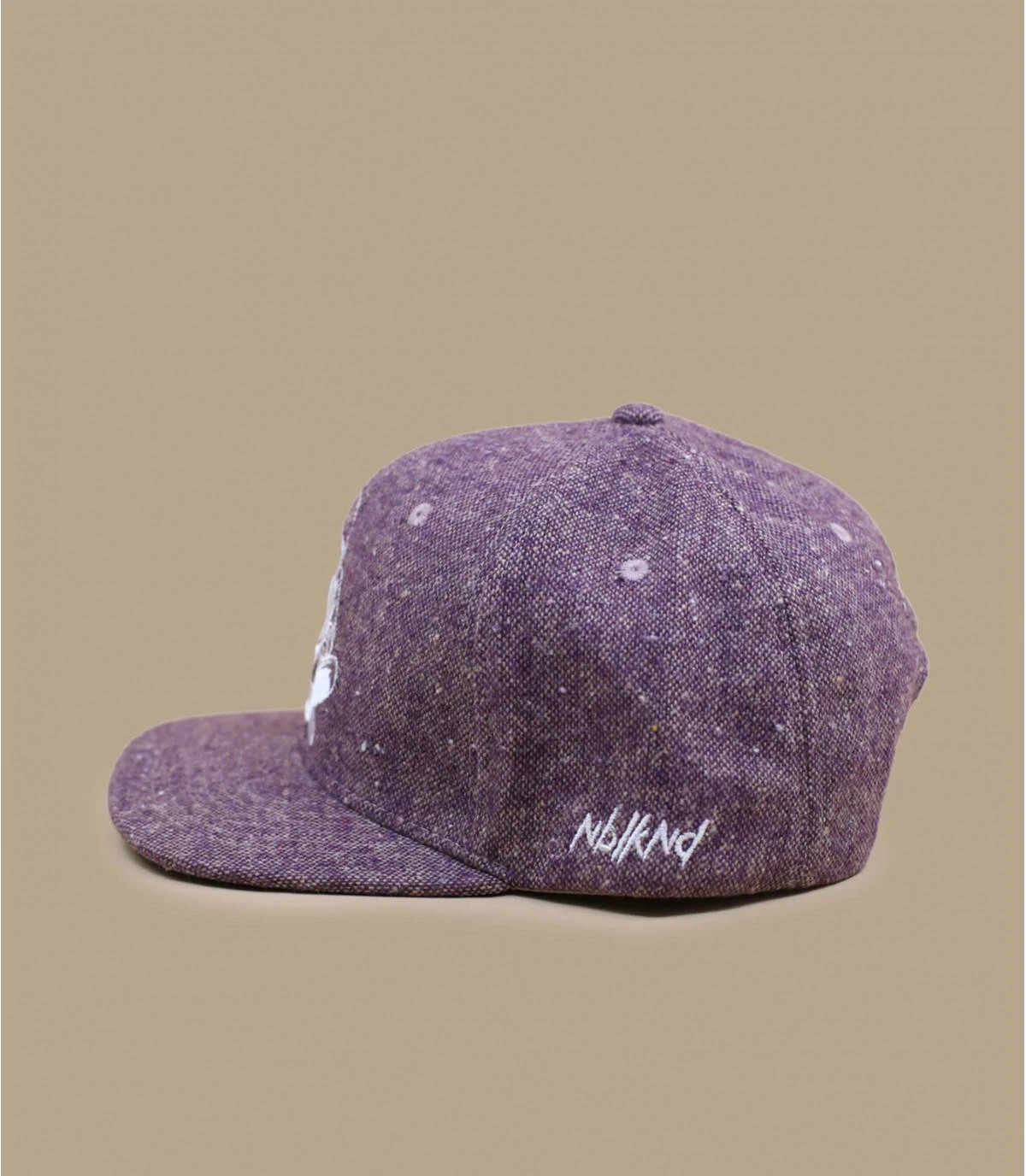 Soignez votre style avec cette snapback de couleur bordeaux et son motif d’humain assis brodĂ© en blanc. Les initiales de Nebelkind sur des points cardinaux apparaissent sous la visière.